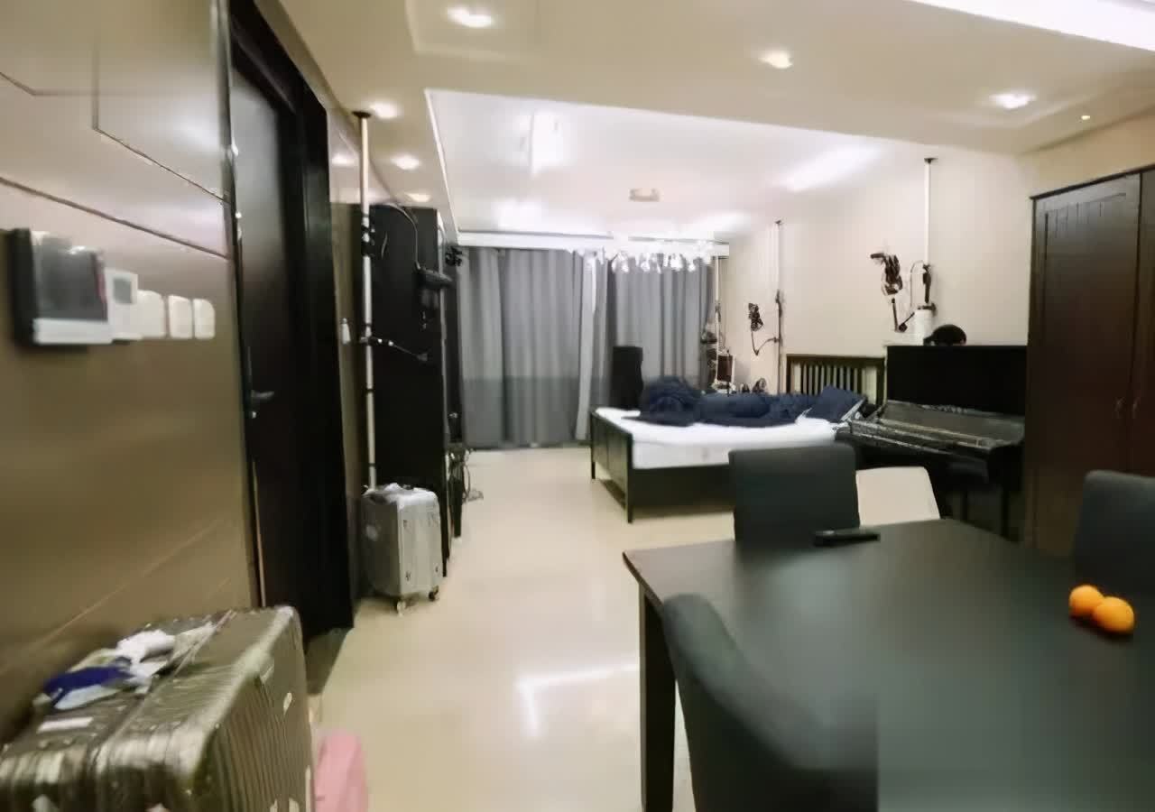 家中客厅与卧室在一间屋子,整体看上非常时尚大气,黑色与白色搭配在一起永远都是经典色,家中屋顶选用了镶嵌式射灯进行设计很是精致温馨,床选用了黑色实木进行大气又时尚,餐厅与卧室之间摆放着一台钢琴对于以为歌手来说平时一定会弹奏钢琴来陶冶情操找音乐上的灵感。